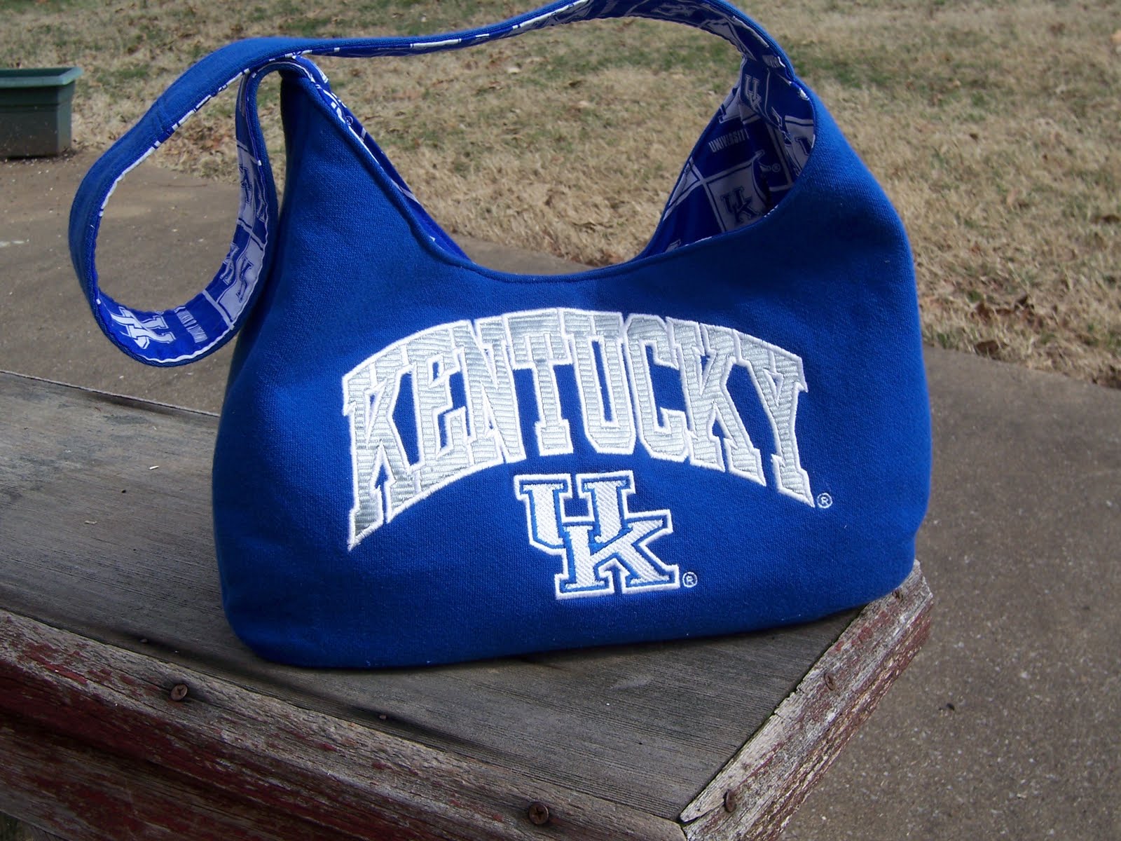 After the recent success of the hoodie diaper bag designs, I wanted to return to the handbag designs.  AND, being married to a Univ. of Tennessee fan, I had to rid my house of this Univ. of Kentucky sweatshirt.  LOL!  And neither is the university that pays the bills every month!